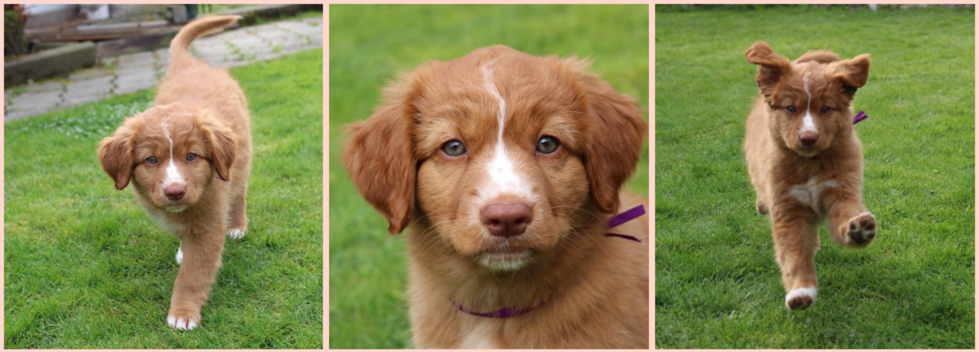Po návratu jsme si za zbytek peněz pořídili našeho prvního tollera – fenku Omany, jejíž jméno odkazuje na zemi, kde se zrodil náš sen. Barva písku v poušti nám navíc připomíná typický odstín srsti plemene Nova Scotia Duck Tolling Retriever, kterému se náš chov věnuje.